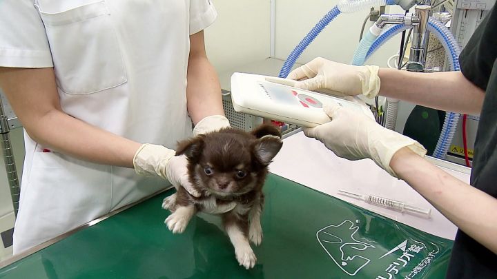 チップに読み取り機をかざすと15桁の番号が表示され、その番号と飼い主の情報が紐づけられるため、飼い主が特定でき、飼育放棄の問題解決につながると期待されている。
