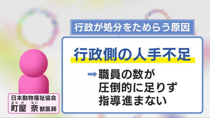法律が改正されても、行政が悪質な繁殖業者の指導や処分をためらう理由について、日本動物福祉協会の町屋奈(まちや・ない)獣医師は、3つの要因を挙げている。