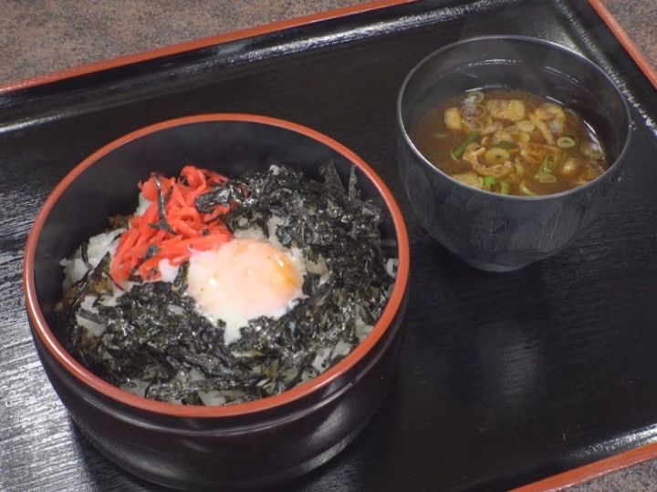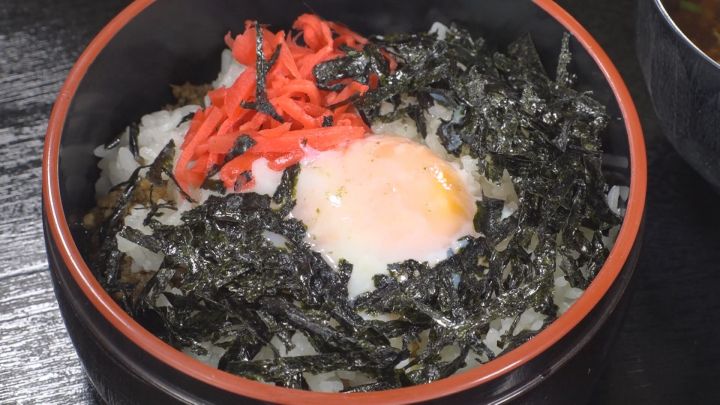 そぼろが甘辛で紅生姜がのっているので、ちょっと甘めの生姜焼き丼のようなメニュー。味付け海苔の風味も感じながらも卵がまとめてくれます。