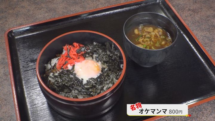 「開店からのメニューです。赤ちゃんがはじめに『まんま、まんま』って言われるでしょ。その『まんま』を取って、桶に入っているからオケマンマです」