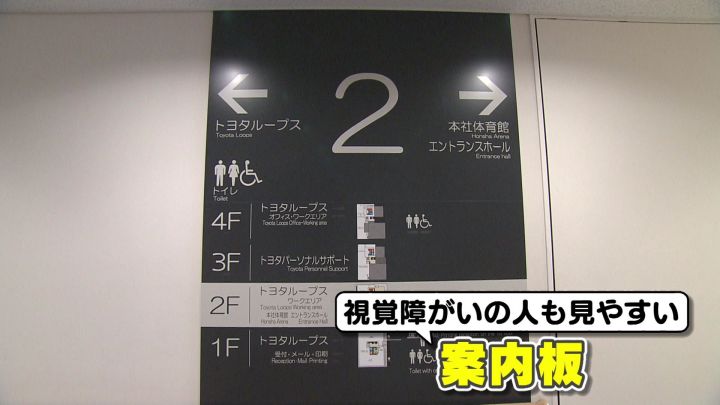 「案内板」は、視覚障がいの人でも見やすい色のコントラストにし、読みやすいフォントだ。