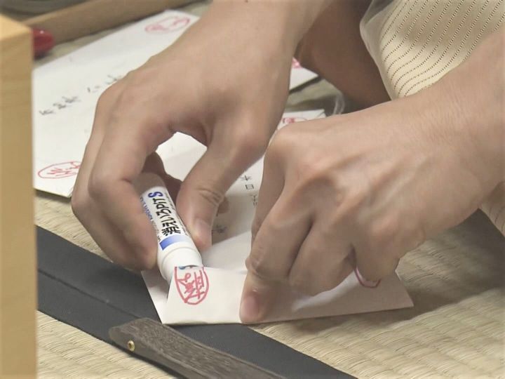 藤井七冠が佐々木七段に封筒を渡すと、糊付けがうまくいかなかったのか、佐々木七段が貼り直していました。これには藤井七冠も少し慌てた様子でした。