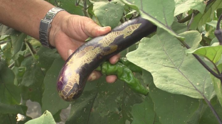 東京・小平市にある農家で見つけたのは、ヒビのようなものが入ったナスです。皮の一部が茶色く変色しています。