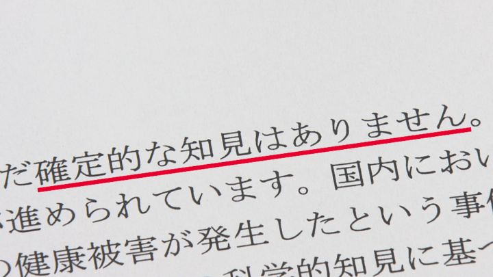 PFASの一種には、発がん・免疫に影響があるとの報告がされているとしながらも、どの程度体に入ると影響があるか、「確定的な知見はない」としている。