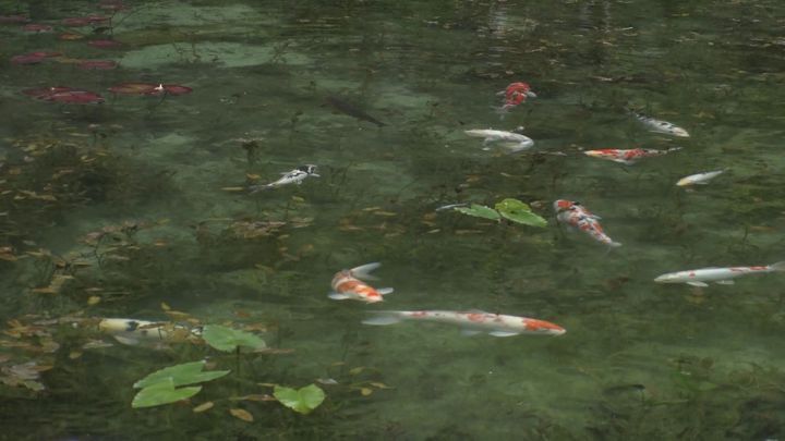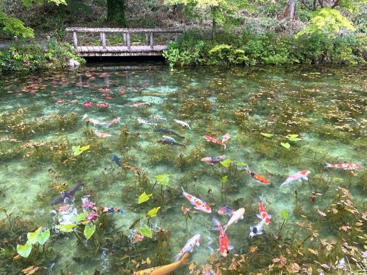透明度の高い湧水に、池の中を泳ぐ錦鯉と初夏に咲くスイレンの花が重なると、それはまるで一幅の絵画のようです。フランスの印象派、クロード・モネの絵画「睡蓮」のようだと、一躍脚光を浴びました。