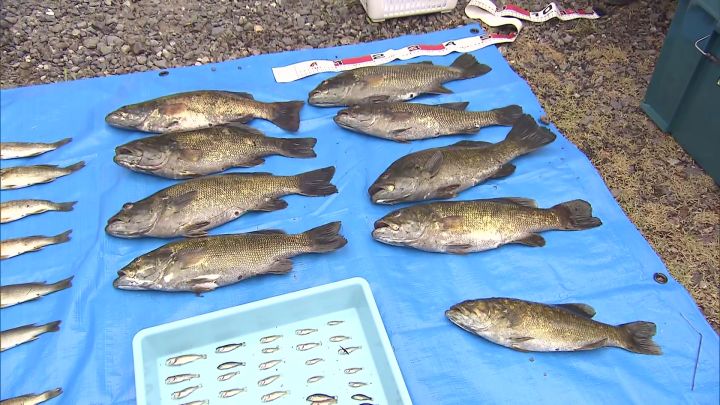 コクチバスは肉食で、岐阜の名産・アユを捕食し、生態系を脅かす恐れがあります。この日は76匹が捕獲されました。