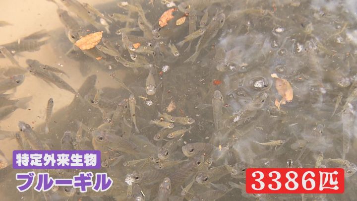 作戦では泥に足を取られながら次々と魚を捕まえ、特定外来生物の「ブルーギル」が3386匹も見つかりました。駆除に参加した名東自然倶楽部の会長によりますと、幼魚を食べるため、モツゴやメダカにとっての脅威になるということです。