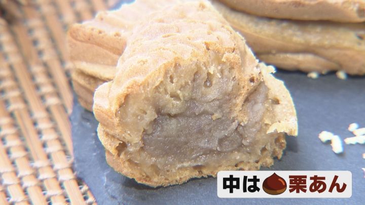 栗粉に合わせ、ミニたい焼きの中は「栗あん」になっています。
