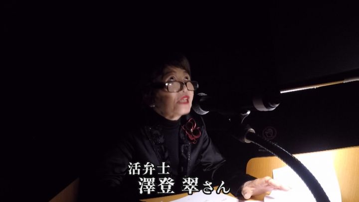 大正時代、1923年のアメリカのサイレント映画『ロイドの要人無用』の映像に合わせて変幻自在に声を操るのは、全国にも数十人しかいない「カツベン」の弁士、澤登翠(さわと・みどり)さんです。