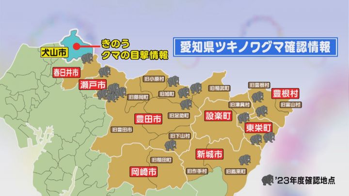 23年度に入ってから、愛知県でもクマの目撃情報が相次いでいて三河だけでなく、尾張地方の山間部にも広がっています。