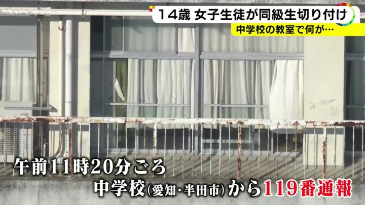 愛知県半田市の中学校で4日午前、授業中に男子生徒が同級生の女子生徒に切り付けられました。女子生徒は逮捕され「殺意を持って切り付けた」と話していることがわかりました。