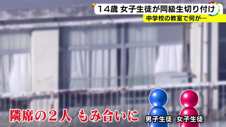 捜査関係者などによりますと当時は国語の授業中で、女子生徒が隣の席に座っていた男子生徒と突然もみ合いになり、持っていたナイフで切り付けたとみられています。
