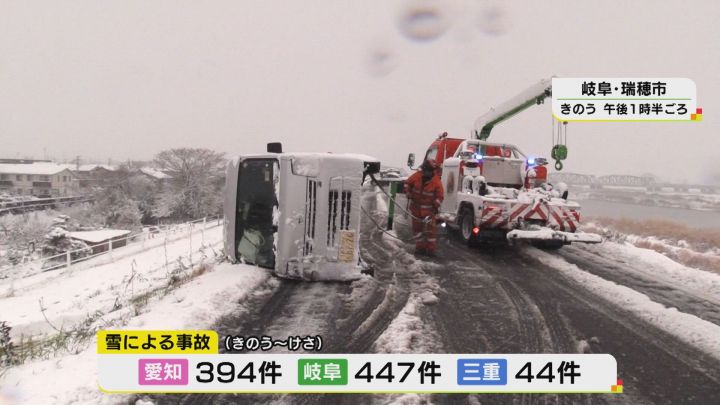 東海3県では24日から25日朝にかけて、雪による事故が計885件発生。