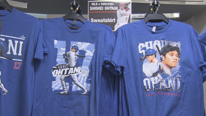 2023年の取材時には、大谷選手が当時所属していたエンゼルスの「赤」が目立ちましたが、店内は「ドジャースブルー」に刷新されています。