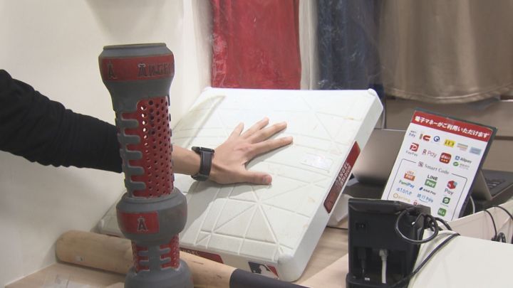 他にも、大谷選手が実際に試合で使用した貴重なボールもあり、さらに非売品ですが、エンゼルスタジアムでドジャースと対戦した時に使われた三塁ベースを実際に触ることができます。