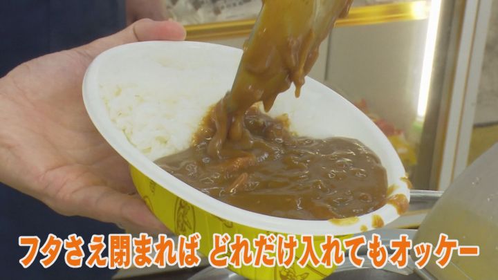 名物メニューはカレーライスで、容器のフタさえ閉まればご飯もルーもどれだけ入れてもオッケーという太っ腹のサービスが人気の秘密です。