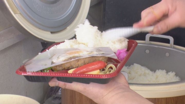 50種類以上あるという手作りのお弁当は購入すると、その場で炊きたてのご飯を入れてくれます。