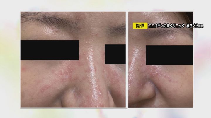 花粉症と同時に花粉皮膚炎に悩まされているという女性は「今年は顔から来ました。すごくかゆくて寝られなかったです」話します。この時期になると、頬からあごにかけて赤くはれたようになるといいます。