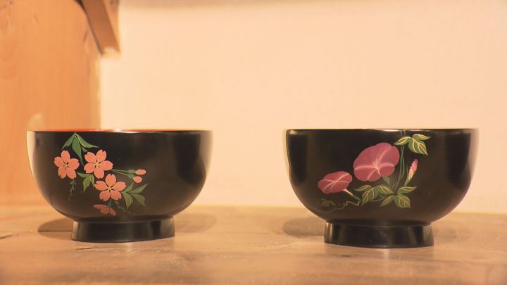 伝統的な蒔絵という技法で四季の花を描いた漆器も、火災で店舗が焼け落ちた工房にわずかに残っていた商品です。