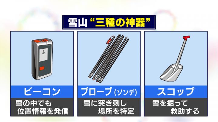 もし雪山に行く場合、「三種の神器」を持っていくようよう呼びかけられています。