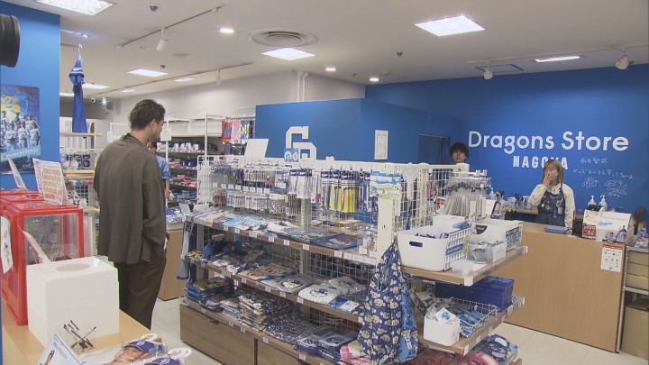 好調ドラゴンズの影響は、名古屋駅のエスカ地下街にあるグッズショップにも及んでいます。