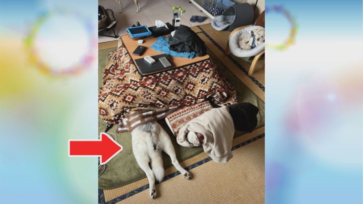 【動画で見る】SNSでバズった演技派な愛犬…「帰りたくない」から“寝たふり”するミックス犬にコタツにダイブするシベリアンハスキー