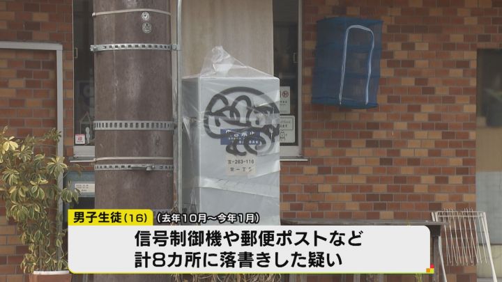 2023年10月から2024年1月にかけ、愛知県一宮市の信号制御機や郵便ポストなど合わせて8カ所に落書きをした疑いで、16歳の男子高校生が書類送検された。