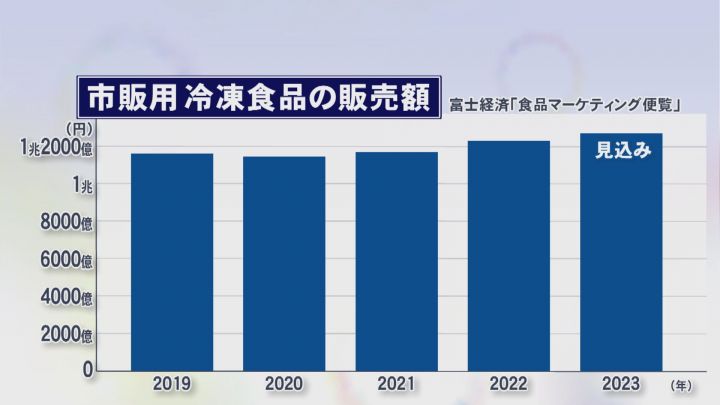 冷凍食品はコロナ禍も追い風となり年々増加。市場規模は1兆2000億円を超えています。