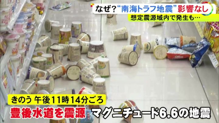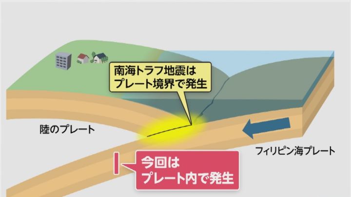 「起きた場所が沈み込んでいるプレート内の地震なので、起きた場所が境界のメカニズムとは違いちょっと影響の仕方は低いということで。南海トラフ巨大地震への影響の可能性は低いと」