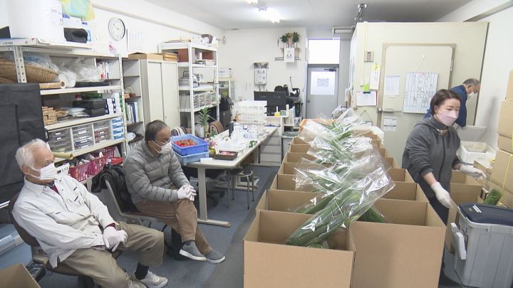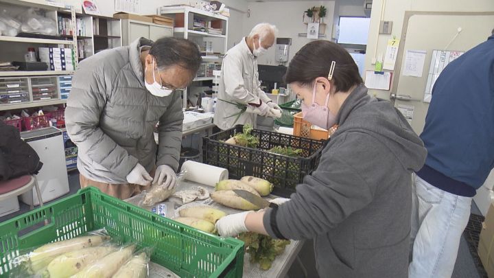 林さんが目指す“持続可能”は、ほかにもあります。林さんやその仲間たちが育てた野菜をセットにして全国に発送しています。作業を手伝っているのが、70代から80代の高齢者です。