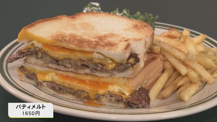 分厚いお肉にとろとろのチーズが2段重なったサンドイッチ「パティメルト」や…。