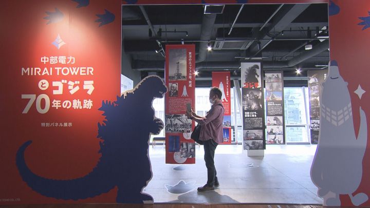 タワーでは、ゴジラと「同級生」の中部電力 MIRAI TOWER70年の歴史の展示が始まりました。