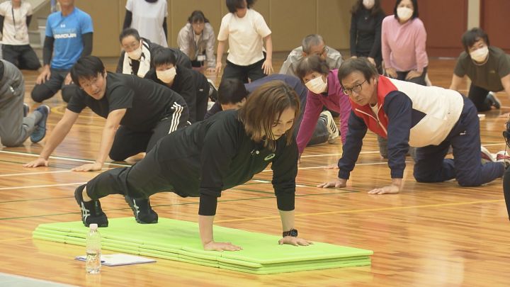 この日は市民を対象にしたトレーニング講習会が行われたが、レクチャーしたのはレスリングではなく、“自宅で簡単にできるトレーニング”だ。市民に時折声をかけながら手取り足取り、丁寧に教えていく。