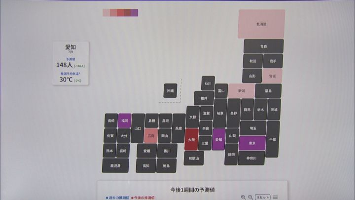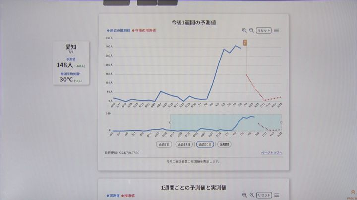 愛知県の情報をみてみると、9日の予想は148人でした。10日以降は雨のため、搬送者は少なくなる見込みとなっています。こうした予測を、病院の医療体制や学校での活動などに活用してもらいたい考えです。