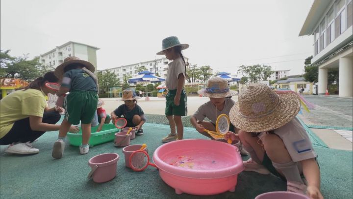 名古屋市天白区のひばり幼稚園では、小さな子供たちは大人と暑さの感じ方が違うため、リスクが高い日は外での遊びを避けるなどしているということです。