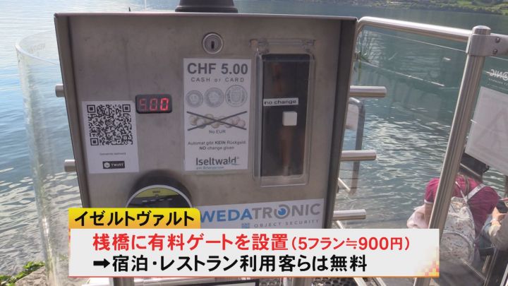 村は対策として、桟橋にゲートを設置し、入場料として5スイスフラン(約900円 2024年7月現在)をとるようになった。ただ、ホテルの宿泊客や、レストランの利用者などは、入場料はかからず無料でゲートに入れる。