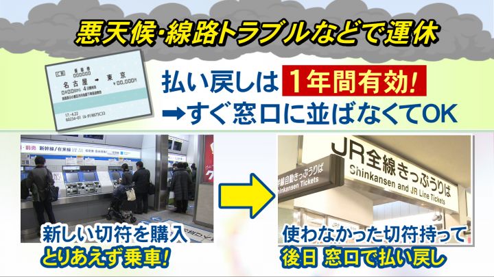 【動画で見る】切符があれば“1年間有効”…新幹線トラブル時の『払い戻し』JR側の問題や悪天候などの場合は全額対象に