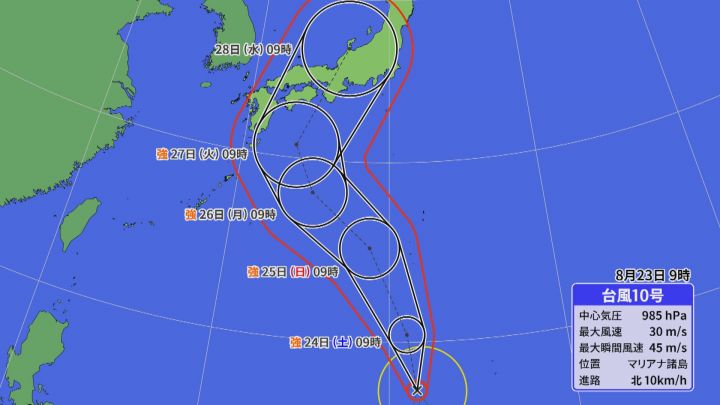 ゆっくりと北上を続ける「台風10号」は27日から28日ごろに、関東から四国に上陸するとみられています。