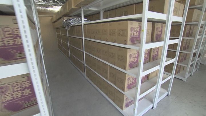 倉庫に非常用の食料や簡易トイレなどの備品が並んでいます。台風などの災害に備え、利用客などおよそ8000人が3日間滞在できるようにしているということです。