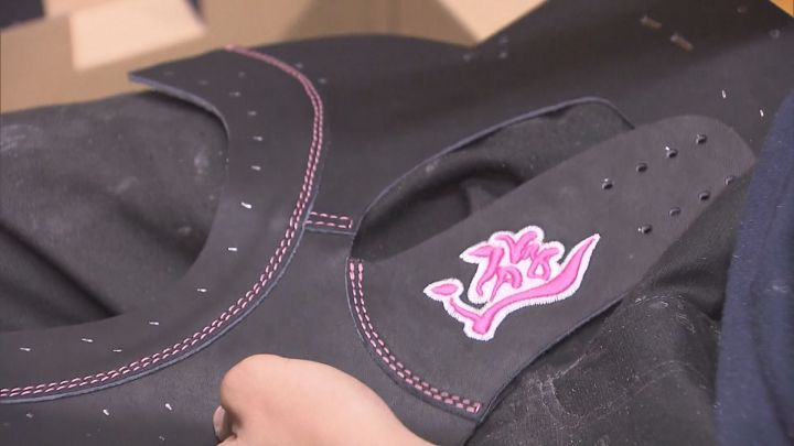 「弟がピンクの糸がいいって言っていたので、ピンク色で縫製の方やっていきます。今、高校生の中で糸の色がピンクというのが流行っているらしくて」