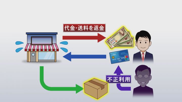 ネット注文では、クレジットカードでの入金確認後、「購入者」の元へ商品を発送する流れだが、不正利用と判明すれば、事業者側が商品の代金と送料を返金することになるうえ、“謎の人物”に発送した商品は返ってくることがないため、販売側にとってはお金と商品の「二重の損失」になるという。