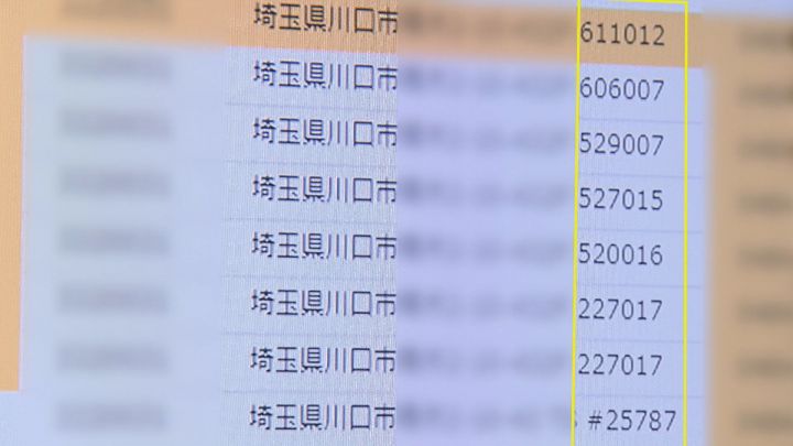 不審な住所の情報では、「埼玉県川口市」のあとに6桁の数字などが並ぶ。