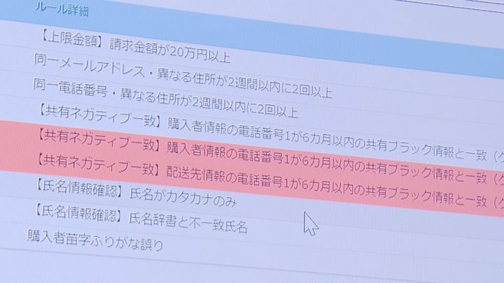 「電話番号とかメールアドレスが一致しているけど、住所が違っているとか、名前がカタカナのみとかいう要素もある。他の加盟店さんで不正と判定した取引情報と住所は一致しなかったが、電話番号が一致していたとか」