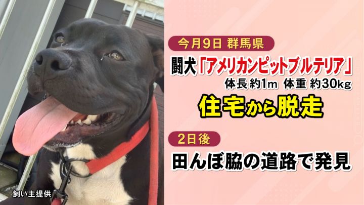 ペンギンが発見された同じ日には、群馬県邑楽町(おうらまち)で、闘犬としても知られる「アメリカンピットブルテリア」が住宅から逃げ出しました。2日後に田んぼ脇の道路でうずくまっているのを発見し、確保されました。