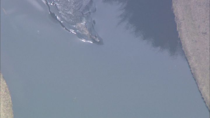 コース内の池で泳ぎ、警察官らに囲まれても、動揺する様子はありませんでした。