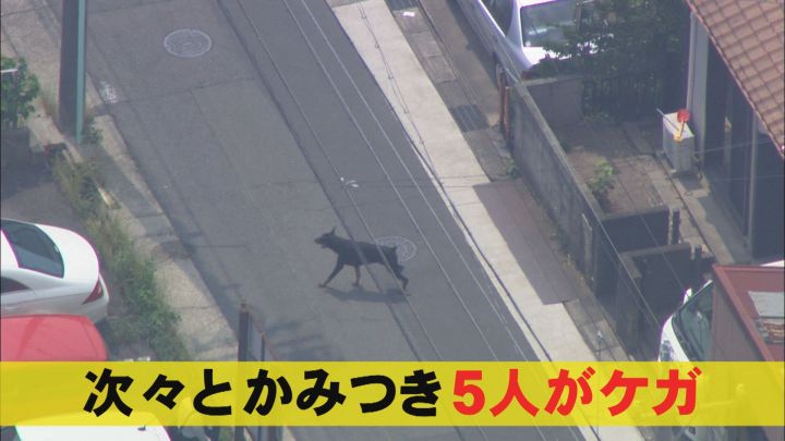 周辺の住民に次々とかみつき、5人がケガ。路上には血痕も落ちていて、担架に横たわる人は、顔から血を流していました。