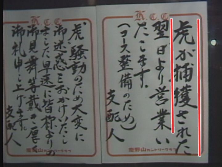 近くのゴルフ場には「トラが捕獲された翌日から営業」という張り紙も。