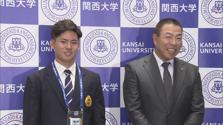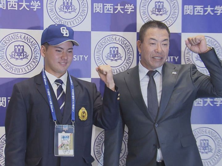 10月25日、中日ドラゴンズの井上一樹新監督は関西大学を訪れ、ドラフト会議で1位指名した金丸夢斗投手(21)にあいさつしました。