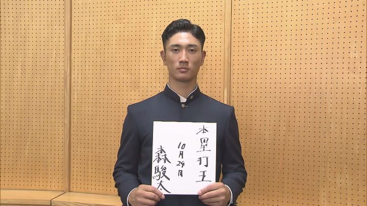 3位指名された高校生、桐光学園の森駿太選手(もりしゅんた 17)は、色紙に「ホームラン王」と記しました。大型内野手に期待です。