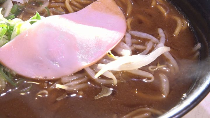 「みそちゅう」とは「みそ味の中華そば」のことで、ダシがきいた味噌スープに、もっちりした自家製中華麺と、もやし、ネギ、ハムがついて540円です。